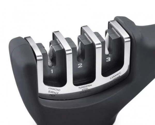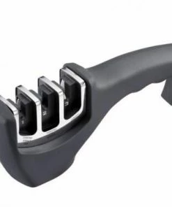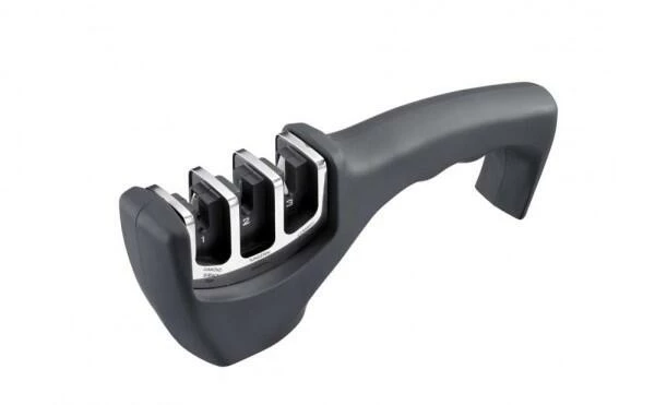 Die Messer werden mit dem Wetzstahl in einem Drei-Stufen-System geschärft, wodurch ein optimales Schärfe-Ergebnis erreicht wird. Weiterhin ist der Messerschärfer mit einem ergonomischen Griff und einer Antirutsch-Gummierung für einen sicheren Halt versehen.