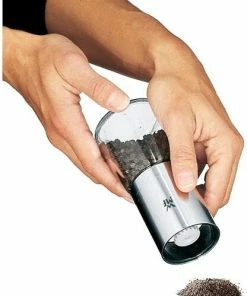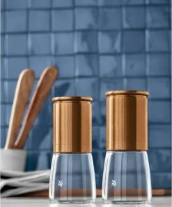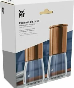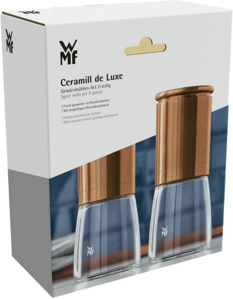 Von Salz und Pfeffer bis hin zu aromatischen Gewürzen verspricht das De Luxe Gewürzmühlen-Set von WMF frisches Mahlen im Handumdrehen. Die exklusiven Keramikmahlwerke – härter als Metall, lebensmittelneutral, verschleiß-, korrosions- und abriebfrei. Perfekt angepasst an alle Ihre Gewürzbedürfnisse bieten die praktischen Einstellräder eine einstellbare Mahlung von fein bis grob, während Aromaschutzdeckel die Mahlwerke der Gewürzmühlen vor Feuchtigkeit schützen – alles unter Beibehaltung des vollen Aromas der Gewürze im Inneren. Gefertigt aus elegantem, mattem Cromargan®, transparentem Glas und hochwertigem Kunststoff sorgen diese Gewürzmühlen durch eine weite Öffnung für eine praktische Visualisierung und Nachfüllung. Abgerundet wird dies durch das Nachfülldesign der Mahlwerke, um die Oberflächen sauber zu halten, sowie durch spülmaschinenfeste Gewürzgläser zur mühelosen Reinigung.