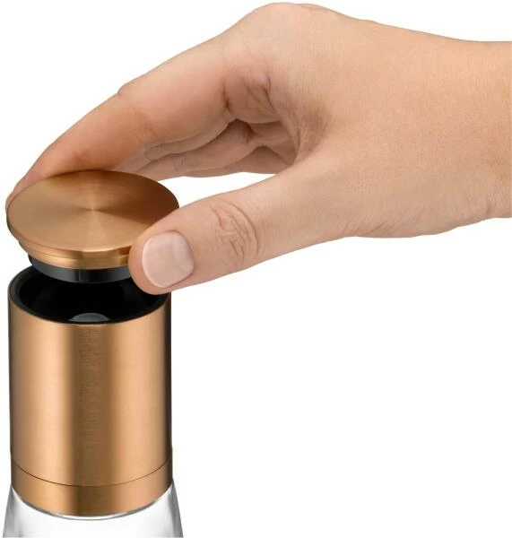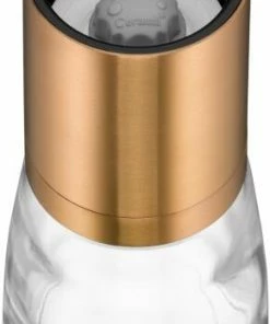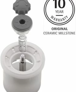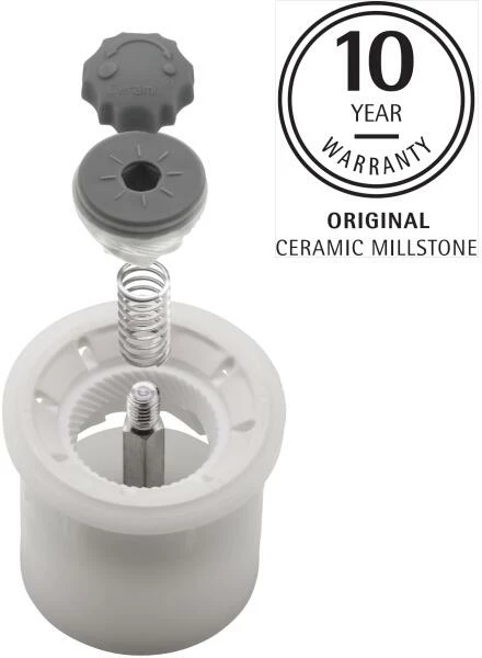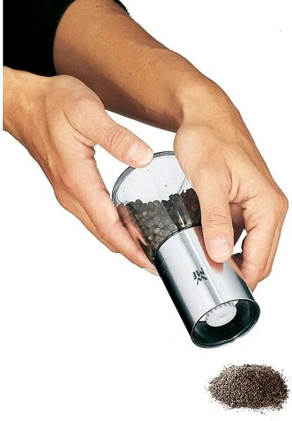 Erst frisch gemahlen beschenken uns Gewürze mit ihrem vollen Aroma, da sich beim Mahlen ihre ätherischen Öle freisetzen. So hat WMF die Ceramill Gewürzmühlen nach dem Vorbild von Pfeffermühlen entwickelt und sie ebenfalls mit einem langlebigen Keramikmahlwerk ausgestattet. Die Mahlsta?rke lässt sich über ein Einstellrad stufenlos einstellen, um je nach Gewürz die gewünschte Körnung zu erhalten. Gewürzmühlen haben einen Behälter aus Glas, so erkennen Sie auf einen Blick, wie viel Vorrat Sie noch haben. Er ist leicht zu befüllen und in der Spülmaschine zu reinigen. Das Oberteil gibt es wahlweise aus Cromargan Edelstahl Rostfrei 18/10, Eichenholz oder hochwertigem Kunststoff. Bei allen Gewürzmühlen sitzt das Mahlwerk oben und hinterlässt keine Mahlspuren auf dem Tisch. Zusätzlich schützt ein Aromadeckel den Mahlkopf und bewahrt gleichzeitig das Gewürzaroma.