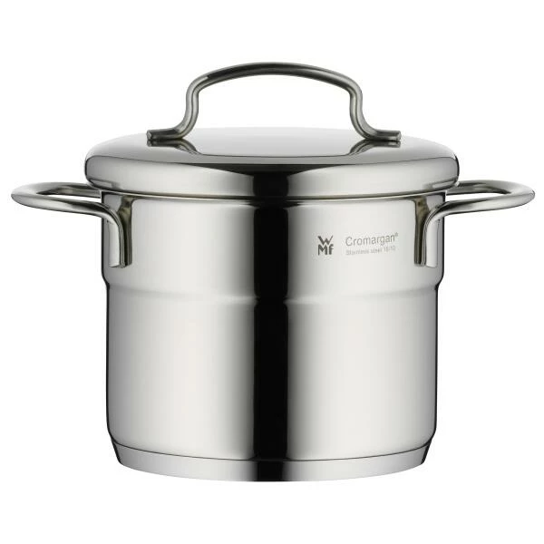 WMF Fleischtopf Mini. So vielseitig wie beliebt: In den Fleischtopf passt alles rein, was zum Kochen viel Flüssigkeit braucht. Und da sein Rand besonders hoch ist, spritzt beim Braten von Fleisch nichts heraus. Auch Nudeln, Kartoffeln und Klöße nimmt er ohne Probleme auf. Großvolumige Gemüsesorten wie Blumenkohl lassen sich prima blanchieren, die gegarten Kartoffeln direkt im Topf pürieren oder zerstampfen.