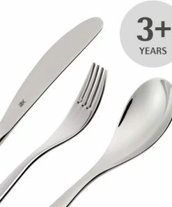 Mit dem Kinderbesteck von WMF lernen die Kleinen spielerisch, mit Messer, Löffel und Gabel umzugehen. Mehr als 125 Jahre Erfahrung stecken in den kindgerechten Besteckteilen aus rostfreiem Edelstahl, die außerdem mit liebevoll gestalteten Motiven und farbigen Bildern begeistern. Das 7-teilige WMF Kindergeschirrset, bestehend aus dem 4-teiligen Kinderbesteck, einer Müslischale, einem Porzellan-Teller und einer Porzellan-Tasse, zeichnet sich durch ein kindgerechtes Design aus, das die Fähigkeit zum selbständigen Essen verbessert und gleichzeitig für Spaß beim täglichen Essen sorgt. Die Kinderbesteckset sind in entsprechende Altergruppen eingestuft, dieses eignet sich für Kinder ab 3 Jahren. Die Größe und Form dieser Kinderbesteckteile machen dieses Set zum perfekten Erstbesteck für absolute Sicherheit und die Entwicklung der Feinmotorik. Die Größen der Besteckteile und die kräftigen Stiele eignen sich besonders für kleine Hände und die kindliche Motorik. Die Messer haben einen leichten Wellenschliff. Der Laffenrand des Löffels hat abgerundete Kanten, und die kurzen stumpfen Zinken der Kindergabel passen sich kleinen Kindermündern an. Das Porzellan-Geschirr wurde für absoluten Komfort und mühelosen täglichen Gebrauch konzipiert. Die langlebigen Besteckteile aus Cromargan Edelstahl Rostfrei 18/10 und das Porzellan können in der Spülmaschine gereinigt werden. Spülmaschinenfestes und säurebeständiges Cromargan garantiert vollen Geschmack, außergewöhnliche Haltbarkeit und eine elegante Ästhetik. Das 7-teilige Kinderbesteck-Set wird in einer hochwertigen Faltschachtel mit Klappdeckel geliefert.