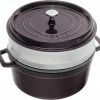 Die hohe, kugelig gewölbte Pfanne ist Topf, Dampfgarer und Fritteuse in einem und gehört in Asien zum wichtigsten Kochutensil. Und auch wir lieben den Wok: Mit ihm gelingen nicht nur stilecht asiatische Gerichte, darin können Sie auch jede Art von Gemüse, Fleisch und Fisch dämpfen, schmoren und dünsten. Die bekannteste Garmethode ist freilich das Pfannenrühren, wenn unter ständigem Rühren die Zutaten kurz und scharf angebraten werden. In der tiefen, bauchigen Form verteilt sich die Hitze gleichmäßig, durch den Metalldeckel mit Wrasenabzug entweichen Kochdünste. Traditionell sitzen seitlich am Wok zwei gegenüberliegende Griffe, an der Wokpfanne befindet sich ein Griff plus Stiel. Heute muss ein Wok nicht mehr viel wiegen, um die Hitze vom Herd schnell weiterzugeben. Das erledigt der patentierte TransTherm® Allherdboden, der auf jeden Herd passt. Die spülmaschinengeeignete Wokpfanne liefert WMF mit Glasdeckel, Ablagegitter zum Warmhalten und Dämpfereinsatz.