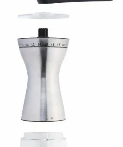 Die manuelle Mühle mit der schlanken Silhouette ist aus Edelstahl und hochwertigem Kunststoff nach einem Entwurf von Kurz Kurz Design gefertigt. Füllen Sie den Behälter mit maximal 70 Gramm Kaffeebohnen und drehen Sie an der leichtgängigen Kurbel. Dann kommt das extra große Präzisionsmahlwerk aus Hochleistungskeramik zum Zuge. Die 18-stufige Mahlgradeinstellung von fein bis grob garantiert ein perfektes Ergebnis. Ihr Kaffeepulver landet in dem praktischen Auffangglas. Als I-Tüpfelchen ist die Kurbel abnehmbar – ideal für die Reise.