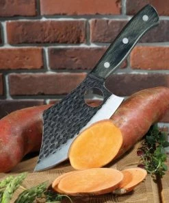 Kochmesser Farmer. Robustes, handgefertigtes Messer aus Klingenstahl mit einem Griff aus Pakkaholz.