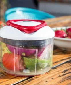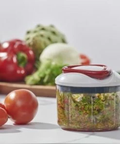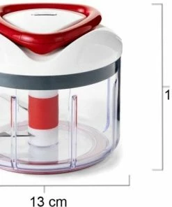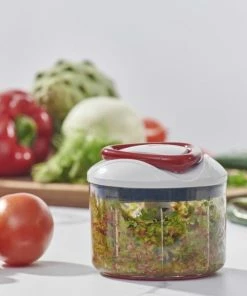 Der Zyliss – Easy Pull ist ein manuell betriebenes Küchengerät mit patentiertem Design zum mühelosen und gleichmäßigen Zerkleinern von Lebensmitteln. Der Universalhacker ist das Must-Have für jede Küche. Zerkleinern, Vermischen, Vermengen und Pürieren wird mit diesem Küchenaccessoire einfacher und bequemer – und Sie benötigen nur noch ein Gerät. Der Universalhacker kommt beim Zubereiten von Käsekuchen, Salsa, Smoothies, Cocktails, Krautsalat, Eiscreme, Hackfleisch, Paniermehl und Suppen zum Einsatz. Für grobes Zerkleinern ziehen Sie drei bis fünfmal am Seilgriff, für feineres Zerkleinern acht bis zehnmal. Dank des stabilen Handgriffs am Seilzug lässt sich das Schnittgut schnell, einfach und gleichmäßig zerkleinern. Die Klinge im patentierten Swiss-Design – schneidet sogar die härtesten Zutaten – zerkleinert große oder kleine Mengen. Verstärkungshalterung für gleichmäßiges Zerkleinern. 750 ml Fassungsvermögen des Behälters.